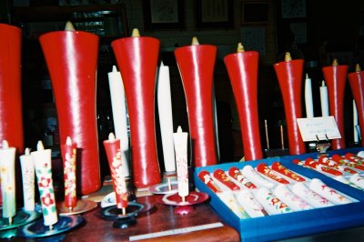 ナイフで、ろうそくの形を整えて