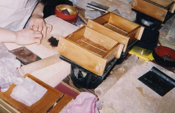 蒸したものに、ニッキの粉を混ぜて伸ばして作ります