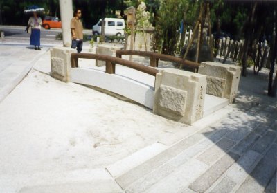 と呼ばれた大通りでした。ここを横切 って流れる堀川の上にかかっているの が一条り戻橋で、ここに晴明は式神を 隠したのです。ここに立って願い事を 思うと、橋の下にいる式神が通った人 の口を借りてお告げを下すといわれて います。戻り橋は、かつては土御門橋 と呼ばれていましたが、三善清行の葬 列がこの橋を通ったとき、比叡山の行 者だった、子の浄蔵がこの橋の上で必 死で加持をして死から甦らせたことで 戻り橋となったと伝えられています。 |