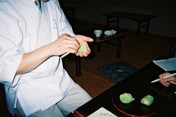 京菓子は,気候の変化 や歴史などが,深くかんけ いしていて使う素材,色, 花などの種類が多く茶道や ,お祝いの場などに多く出 されている。 |