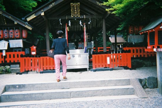 は有名な嵯峨野の竹林にあります。幸せを願う若い人達 は嵯峨野を訪れたときは、ご利益のある野宮の神様にお 願いをしていきます。 野宮はその昔、天皇の代理で伊勢神社にお仕えする斎王 (天皇の娘さんの中からえらばれます)が、伊勢へ行か れる前に身を清められたところです。それは黒木の鳥居 と小柴垣に囲まれた嵯峨野の清らかなところでした。そ して源氏物語や謡曲「野宮」など文学の神社としても有 名です。 |